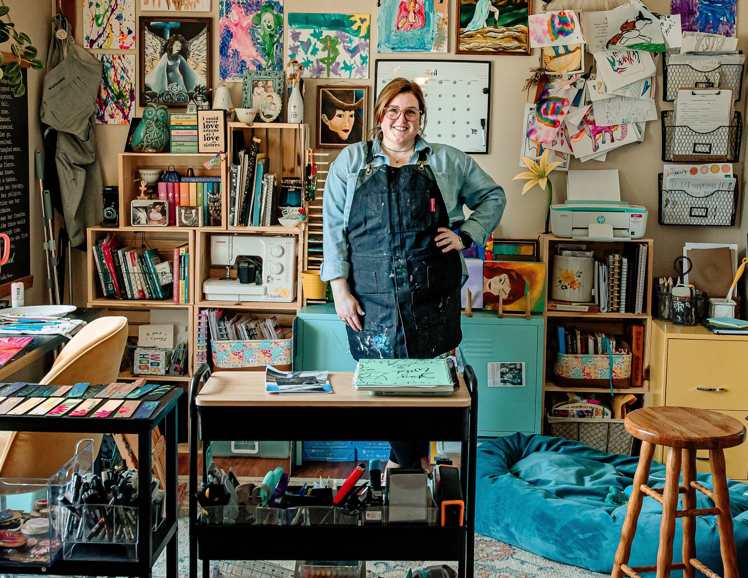 Hello friends, my name is Felicia and I’m the girl behind Felicia Faith Art. To my core, I’m just a quirky, midwestern craft nerd with a love for all the ways creativity can flourish. My main areas of focus include graphic design, drawing, and painting using acrylics across a variety of mediums. With an appreciation for repurposing and recycling, I have gotten comfortable with incorporating materials into my work such as recycled canvas, up cycled frames and the occasional thrifted bauble I feel I can give a second life. My work tends to be bold in color, brimming with character and far from traditional…but hopefully you find it as fun and heartfelt as it is for me to create.